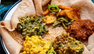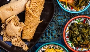 Injera, the iconic Ethiopian flatbread, is more than just a staple food—it’s a cultural symbol deeply rooted in Ethiopian and Eritrean traditions. Made from teff, an ancient gluten-free grain, injera has a unique tangy flavor and a spongy texture that sets it apart from other breads. It serves as both a plate and a utensil, used to scoop up stews, vegetables, and other delicious dishes.